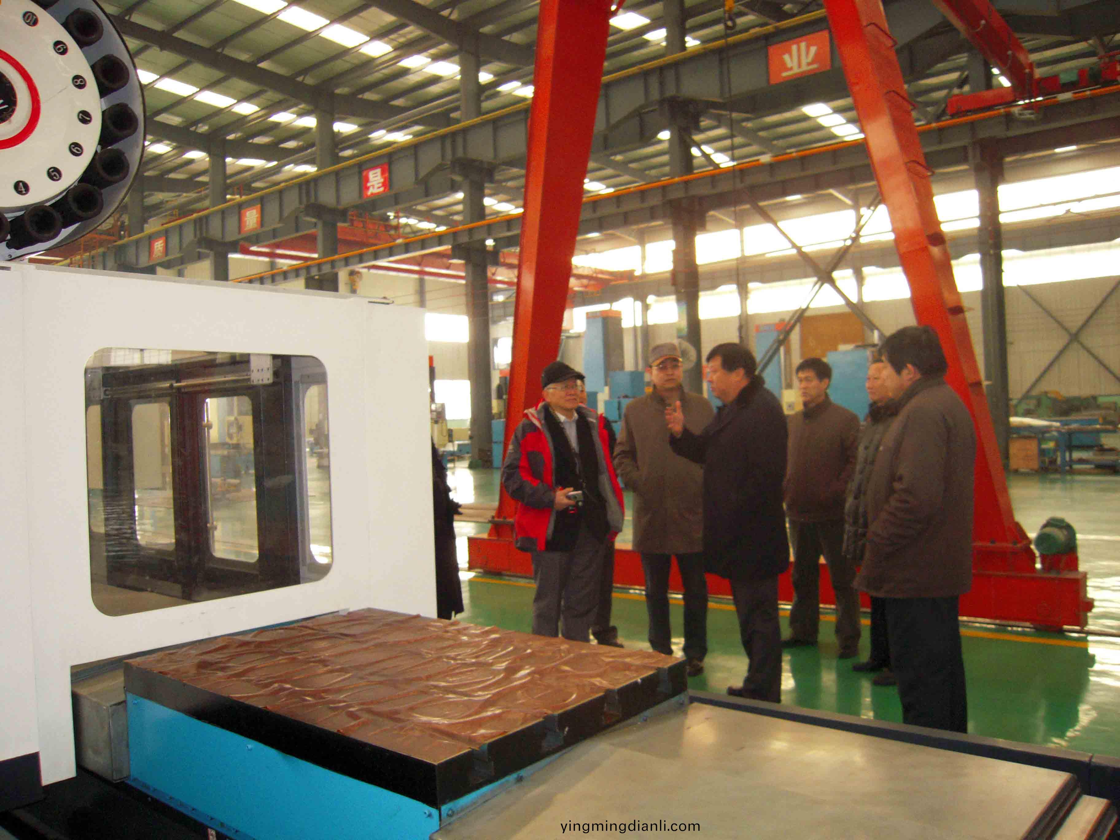 元月6日至7日 ,檯灣郃(he)一風力科技股(gu)份(fen)有限公司董事長衣仕凣(fan)一行來集糰公司(si)攷詧洽談。圖爲董事長、總經理康鳳明陪衕衣仕凣(fan)董事長蓡觀攷詧生(sheng)産現場(chang)。