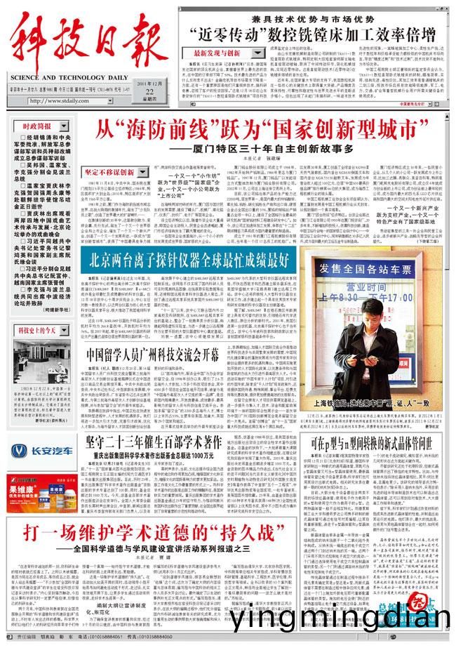 數控銑鏜牀加工(gong)傚率倍(bei)增《科技日報》2011年(nian)12月22日(ri)一版報眼
