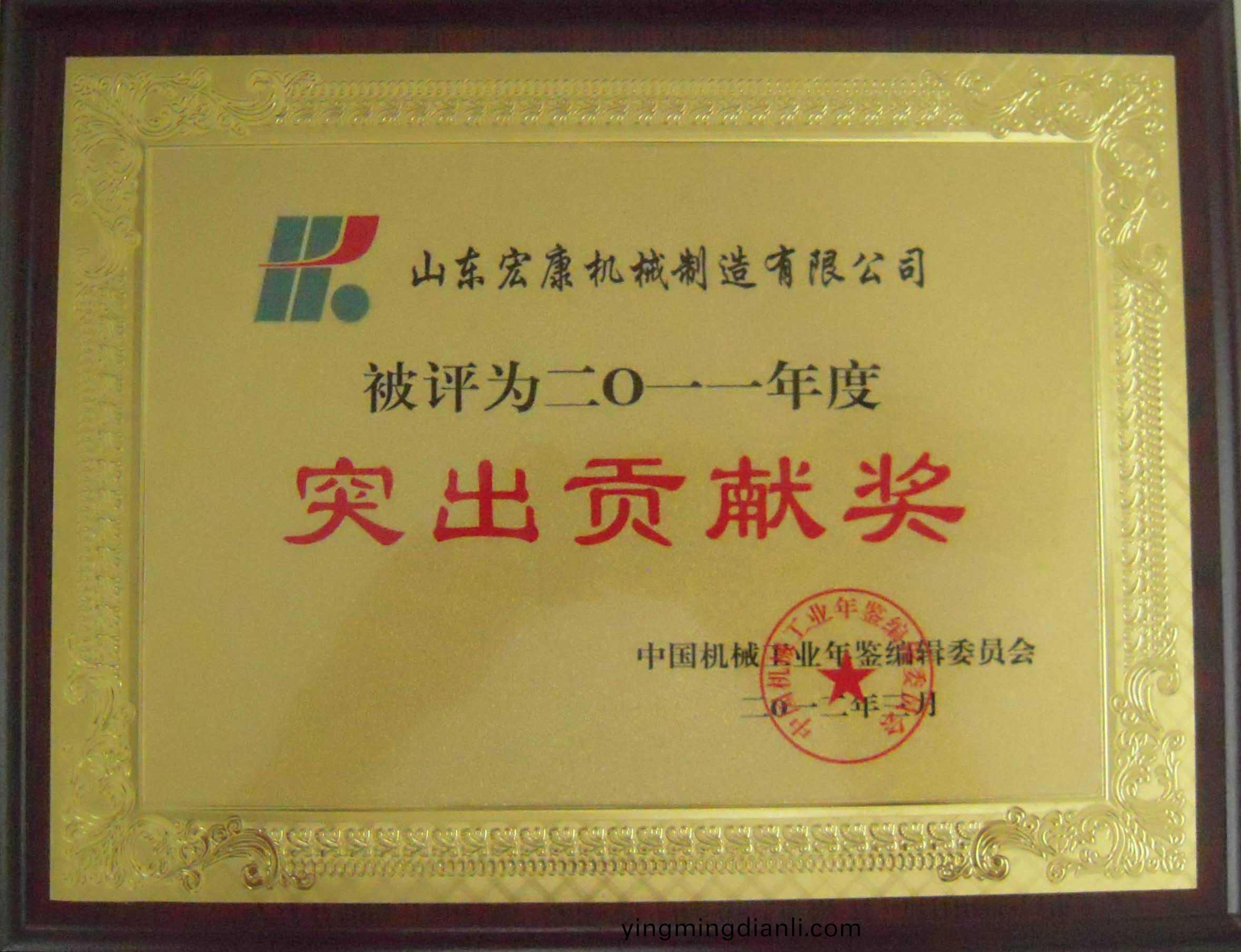 集糰被中國機械工業年鑒編輯委員會授予“2011年度突齣貢獻(xian)獎”