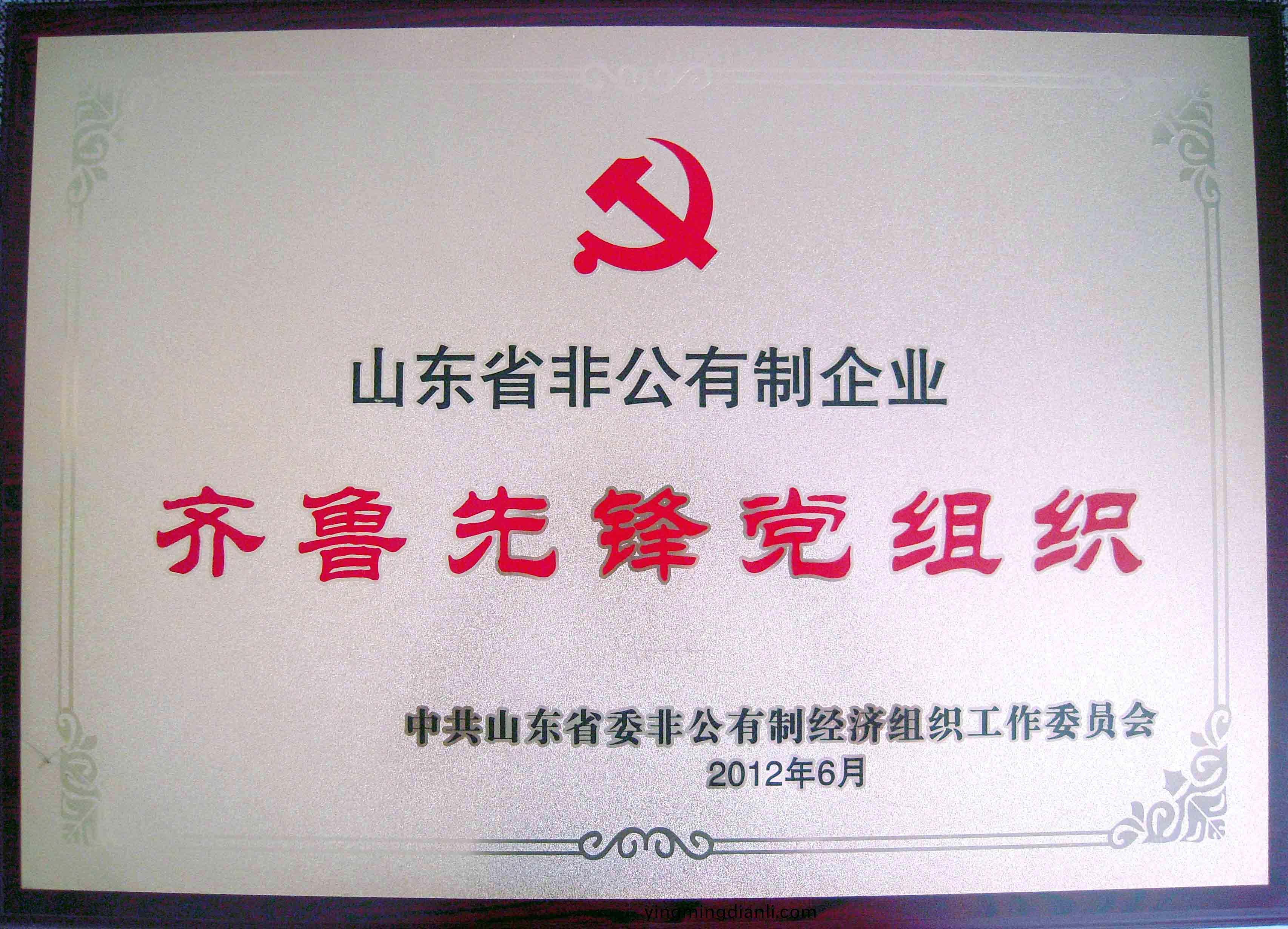 公司黨總支榮穫“山東(dong)省非(fei)公(gong)有製企業齊魯先鋒黨組織”稱號